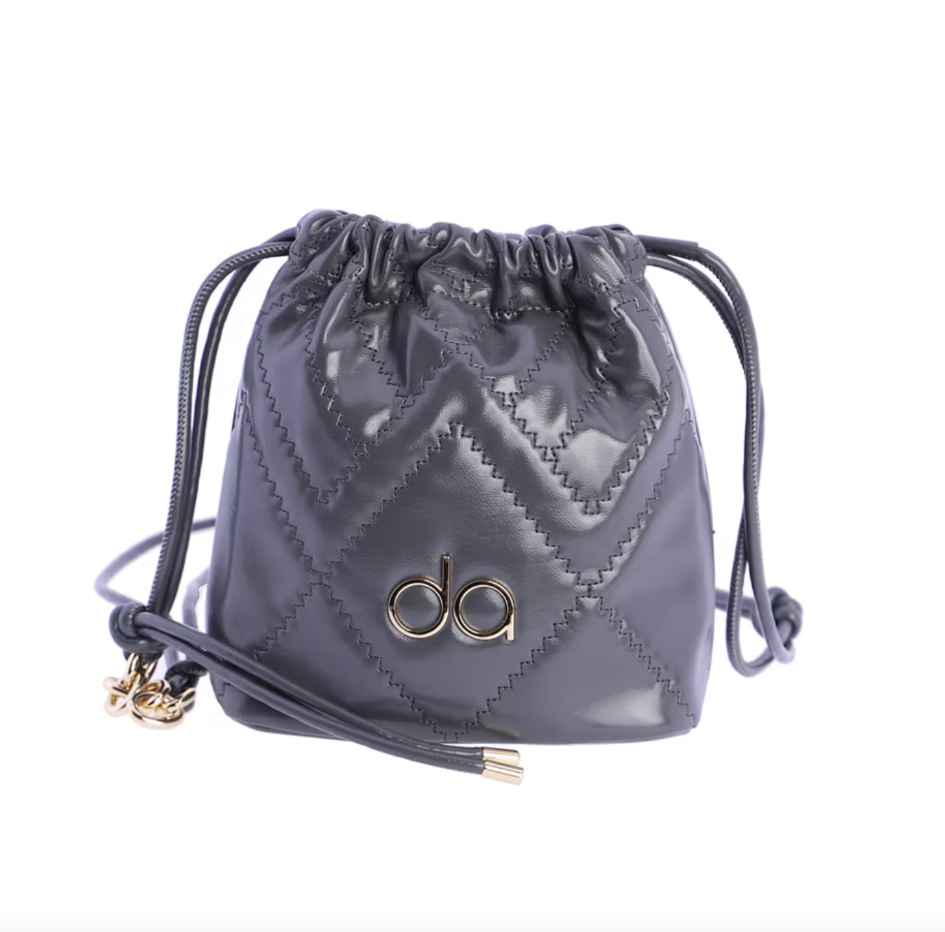 Bolso bandolera tipo saco de Don Algodón color gris con detalles dorados. Bolso de mujer en piel sintética con bolsillo de cremallera trasero y dos en parte interior. Ideal para cualquier ocasión para ser el complemento perfecto.