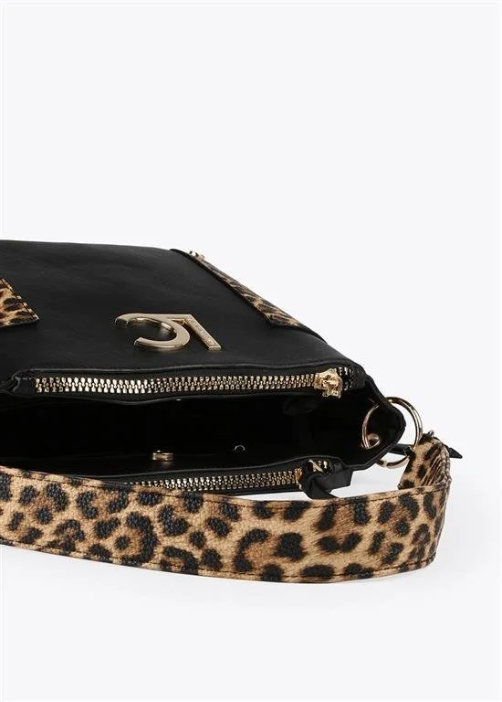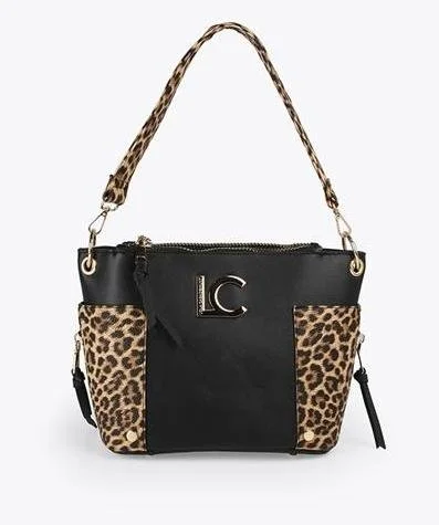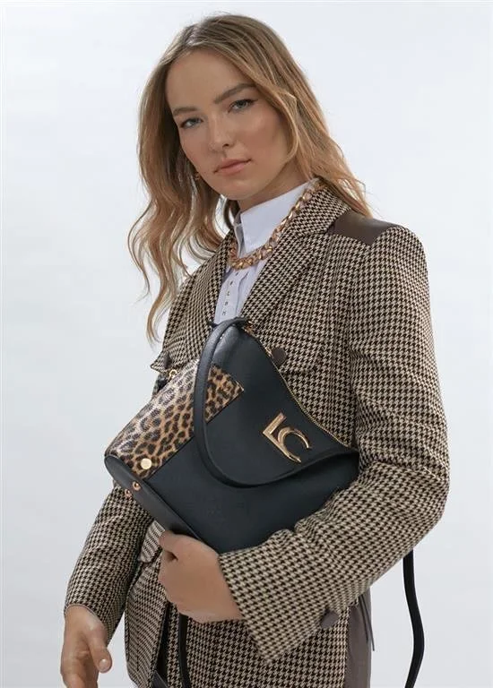 Bolso Mini Shopper de estampado Animal Print de Lola Casademunt. De color negro con estampado lateral animal print de estilo safiano. Cierre con cremalleras en dos apartados más uno central con cierre de clip. Incoporta dos asas, una para colgar al hombro de estampado print y otra bandolera negra, ambas extraíbles. Logo Frontal de la marca.